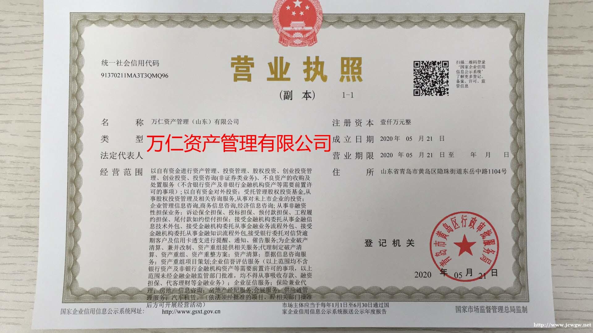 2020年5月27日 万仁资产管理(山东)有限公司 山东青岛 注册资金:1000万
