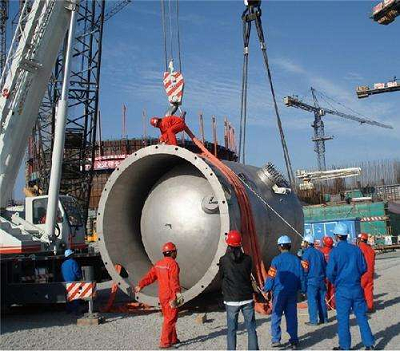 6、两台吊车同时吊起一个物件时,应使承载均匀,起升机构的钢丝绳保持垂直,同时同步起升或降落。抬杆应保持水平,要专人指挥。